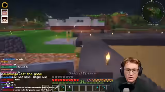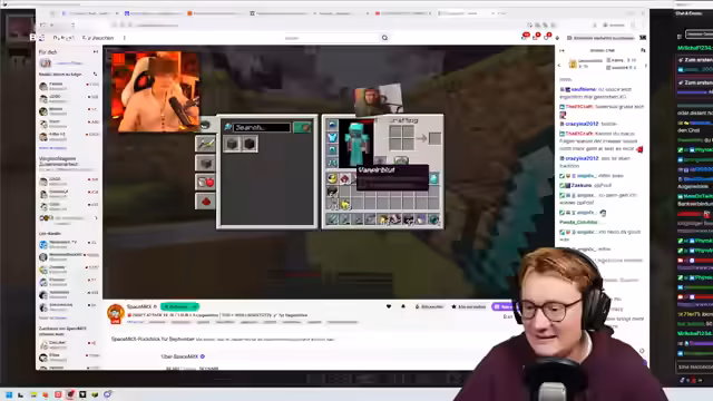 01:25:41Der Streamer arbeitet an einem komplexen Redstone-Projekt, insbesondere an einem sogenannten Leg-Turn, der mit Slabs, Büchern und Bücherregalen konstruiert wird. Dabei erwägt er den Einsatz eines Federfalls für einen Falltod, um ein Projekt abzuschließen. Die Zusammenarbeit mit anderen Streamern wie Space und Fuchse thematisiert er, wobei er Fuchse beim Bau eines TNT-Tupper helfen soll, dies aber auf einen späteren Termin verschiebt, da der Nether für einfachere Baupläne benötigt wird.