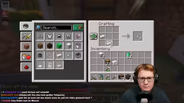 08:38:16Das Thema wechselt zurück zum Server-Betrieb. Ein neu geborenes Villager-Baby wird in einem Enchanting-Raum eingeschlossen, da es noch nicht ausgewachsen und handlungsunfähig ist. Der Fokus liegt auf der Verarbeitung der abgebauten Ressourcen, wie dem Schmelzen von Ton zu gebranntem Ton. Der Streamer beklagt versehentlich falsch hergestellte Tränke und muss die Ressourcen recyceln.
