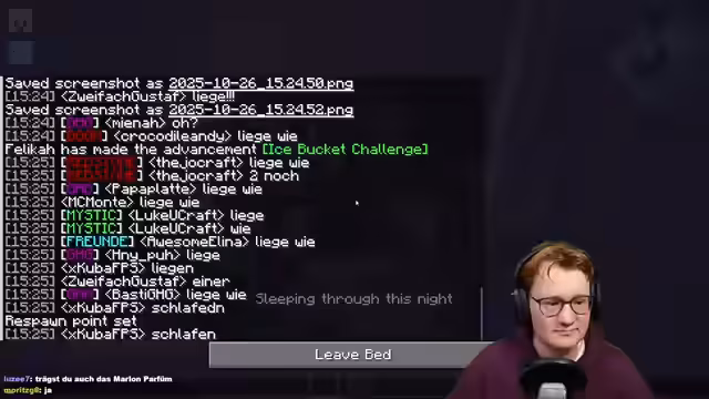 03:48:44Ein wiederkehrendes Thema im Stream ist die massive Frustration über den Schlafmechanik in Minecraft. Der Streamer beschreibt diesen als unfassbar nervig und zeitraubend, da man für jede Nacht lange Zeit im Bett liegen muss, ohne dass sich etwas tut. Er beklagt, dass selbst erfahrene Minecraft-Spieler, wie die Teilnehmer von Craft Attack, das Konzept nicht verstehen, was zu großer Verärgerung und gefühlter Zeitverschwendung führt. Der Streamer äußert, er könnte über das Thema ausrasten, und vermutet, dass dies für alle Teilnehmer nervig ist.