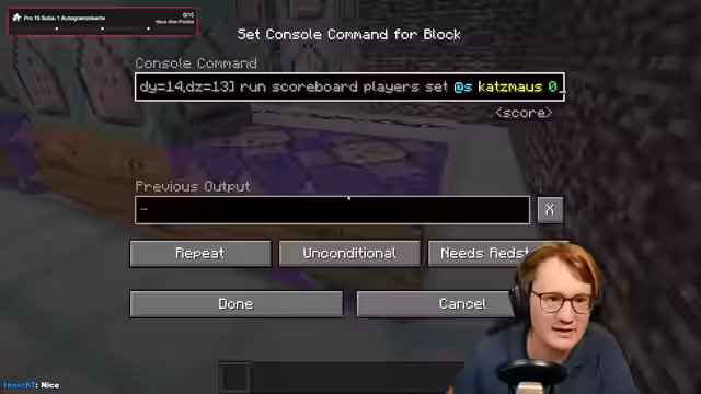 01:08:14Es wird eine Autogrammkartenaktion gestartet, bei der pro 15 neue Abonnements eine Autogrammkarte verlost wird, die in der nächsten Woche verschickt werden sollen. Es treten Grafikfehler auf, die möglicherweise durch Bedrock oder die Level-of-Detail-Mod verursacht werden. Ein Reconnect wird durchgeführt, um die Probleme zu beheben. Die Autogrammkarten werden per Post an die Gewinner der Verlosung verschickt. Jeder neue Sub zählt für die Aktion, auch Amazon Prime Subs. Es wird überlegt, ob Resubs auch dazu zählen, was von Twitch unterschiedlich gehandhabt wird. Es werden Sounds für das Betreten und Verlassen des Spiels ausgewählt, wobei ein einfacher Sound bevorzugt wird, um nicht zu aufdringlich zu sein.