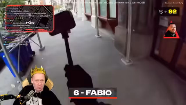 02:30:32Der Streamer verfolgt die Fortschritte der Spieler im "Manhunt"-Spiel. Er beobachtet die Szene um Fabio Schäfer, der trotz der Gefahr in einem Café sitzen bleibt, um die Hunter auszuspionieren. Gleichzeitig werden die Maßnahmen der Polizei nach dem Überfall beschrieben: 14 maskierte Personen werden gezählt, die Szene ist unklar, und es wird eine Task Force zur Aufklärung der Lage geschickt. Der Druck für die Spieler, unentdeckt zu bleiben, steigt ständig.
