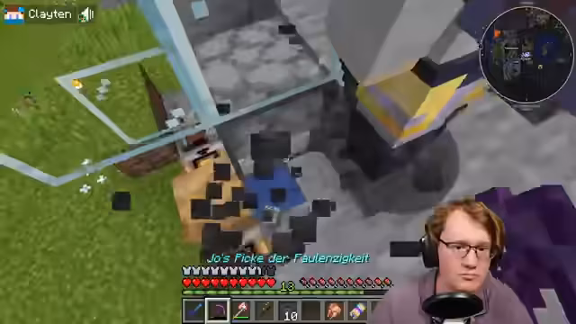 05:57:21Nachdem die Grundkonstruktion steht, konzentriert sich das Team auf die Haltung der Hühner und die Automatisierung der Farm. Ein Problem ist, dass die Hühner aus ihrem Sitzplatz springen, wenn sie Blöcke berühren. Die Lösung besteht darin, einen Minecraft-Assembler und Schienen zu verwenden, um den Bereich kurzzeitig in eine nicht-interaktive Konstruktion zu verwandeln. Gleichzeitig wird an einem automatisierten System gearbeitet, das mit Deployern und einem Glasbehälter sorgt, dass nur erwachsene Hühner in die Verarbeitungsanlage gelangen.