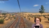 02:07:17Der Stream startet mit einer Hochgeschwindigkeitsfahrt, bei der die Höchstgeschwindigkeit des Zuges erreicht wird. Dabei werden diverse technische Grafikglitches im Spiel erwähnt, besonders bei Tunneln und Oberleitungen, die jedoch das Gameplay nicht wesentlich stören. Die sehr lange, gerade Strecke führt durch Wald, Hügel und Tunnel und endet pünktlich im Bahnhof, wo bereits die ersten Passagiere auf den Zug warten.