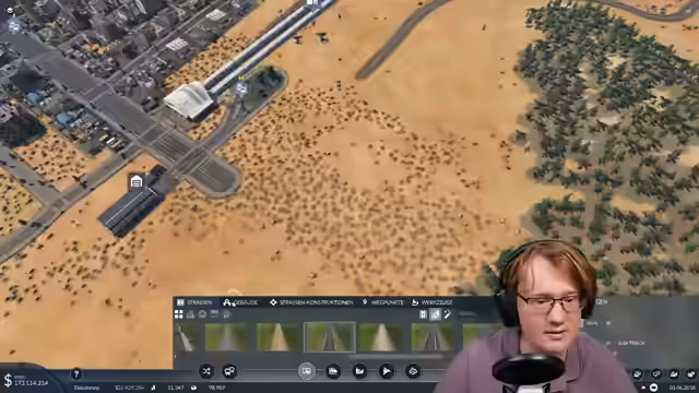 02:14:30Nachdem das gänzliche Löschen der Stadt scheitert, lädt der Streamer den alten Spielstand. Anschließend wird ein weiteres Experiment gestartet: Eine Stadt wird umgestaltet, indem zunächst nur ein zentraler Bahnhof gebaut wird. Mithilfe von Befehlen wird das komplette Stadtbild gelassen, um dann die Stadt exakt nach dem eigenen Willen um den neuen Bahnhof herum neu zu gestalten und das Straßennetz zu definieren.