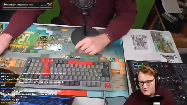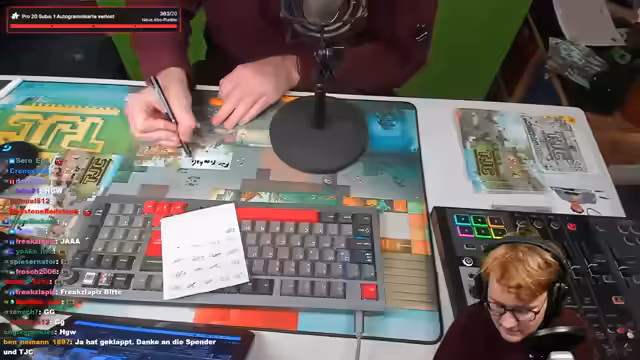 05:06:08Die große Autogrammkarten-Aktion beginnt, und es werden die Mods um Unterstützung gebeten. Das Sub-Goal bleibt offen, und es werden so lange Autogrammkarten geschrieben, bis alle abgearbeitet sind. Aktuell sind es 260 Subs. Um eine Autogrammkarte zu erhalten, müssen die Zuschauer Flüsternachrichten auf Twitch aktivieren. Dazu müssen sie in den Profileinstellungen unter Privatsphäre die Option "Flüsternachrichten auch von unbekannten Nutzern blockieren" auf "Aus" stellen. Es wird eine Verlosung in mehreren Runden durchgeführt, bei der jeweils drei oder vier Gewinner gezogen werden. Jüngere Zuschauer werden gebeten, ihre Eltern um Erlaubnis zu fragen, da die Karten per Post verschickt werden. Die Gewinner werden im Chat aufgerufen und müssen ihren gewünschten Namen für die Karte angeben. Es wird darauf hingewiesen, dass die Tonaussetzer im Stream immer häufiger werden, was auf technische Probleme hindeutet. Die Aktion wird beendet, und es wird angekündigt, dass es in den nächsten Tagen weitere Gelegenheiten geben wird, Autogrammkarten zu gewinnen. Zum Abschluss wird zu einem Raid auf den Stream von "Space" aufgerufen, wo die Zuschauer ebenfalls viel Liebe und Aufmerksamkeit hinterlassen sollen. Es wird erwähnt, dass Space Liegestütze machen muss, wenn er Subs erhält.