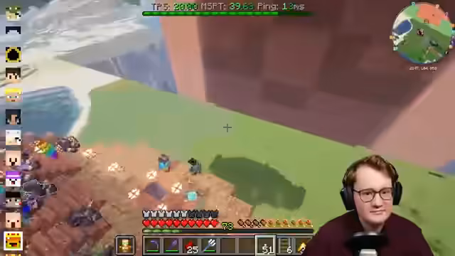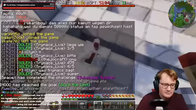 04:04:58Die Eröffnung des Kupfergolems durch Trimax steht kurz bevor, was zu einer Verbesserung der Serverleistung führt, da viele Spieler zum Event wechseln. Dies ermöglicht es, den vorbereiteten Song in Originalgeschwindigkeit anzuhören. Der Golem wurde mit 187.000 Kupferblöcken, 35.552 Bulbs, 1.536 Shroom Lights und 512 Frog Lights gebaut, was insgesamt 222.674 Blöcken entspricht. Eine spezielle Technik ermöglicht es, den Golem von vorne zu beleuchten und ein- und auszuschalten. Das Team hat 75 Trial Chambers abgebaut, um die benötigten Ressourcen zu sammeln. Der Bau des Golems und die Redstone-Technik wurden größtenteils selbst entwickelt und umgesetzt, wobei Logo maßgeblich an der Redstone-Technik beteiligt war. Die Eröffnung ist ein großer Erfolg, und es wird angekündigt, dass durch das Event 6500 Euro für einen guten Zweck gespendet wurden.