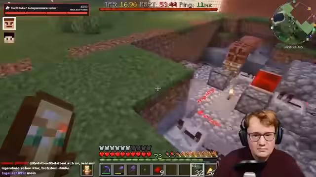 02:20:26Nach der Demonstration der TNT-Falle wird eine Diskussion über die Konsequenzen einer solchen Falle geführt, da der betroffene Spieler sein gesamtes Inventar verlieren würde. Es wird angedeutet, dass diese Falle für 'Zabik' gedacht sein könnte. Danach wird eine Autogrammkarte verlost, wobei pro 20 Subs eine Karte vergeben wird. Die Mods werden informiert, um die Gewinner zu notieren. Anschließend wird mit dem Bau einer Beat-Maschine begonnen, um einen Song für die Eröffnung des Kupfergolems zu erstellen. Es werden Repeater, Stein, Glas und Sand benötigt. Während des Baus werden weitere Subs gesammelt, was zu der Ankündigung führt, dass bei 80 Subs zwei Autogrammkarten verlost werden. Die Beat-Maschine soll einen Rhythmus ohne Bassdrum erzeugen.