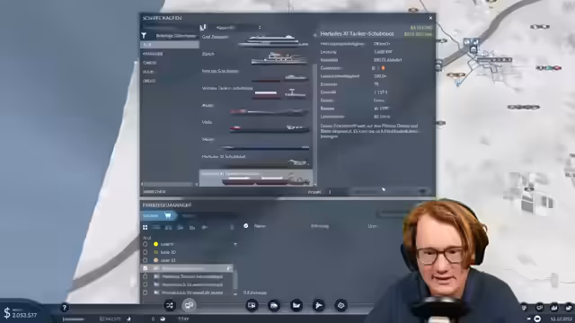 03:18:59Über den Fahrzeugmanager werden Fahrzeuge gekauft. Der Streamer richtet zwei separate LKW-Linien ein, eine für jeden Bauernhof, da dies laut Entwicklern für das Balancing sinnvoller ist. Zunächst werden LKWs mit der höchsten Kapazität von 25 Gütern erworben und den Linien zugewiesen. Diese fahren nun die Bauernhöfe an, um den Weizen abzuholen und zum Hafen zu bringen, wo er von Schiffen nach Berlin transportiert wird.