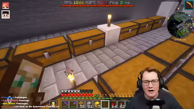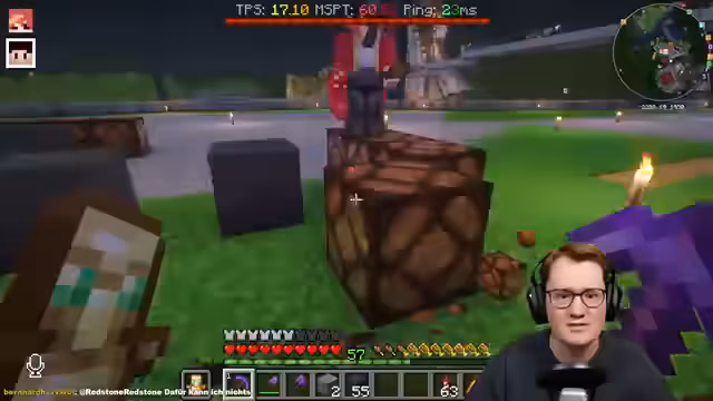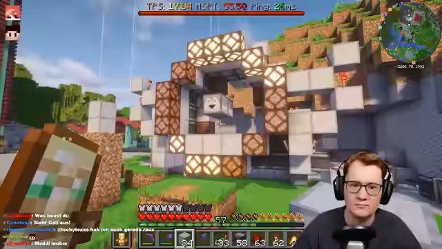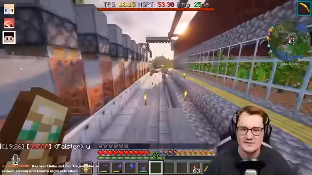 02:46:55Die 'Freizeitpark Company' wird vorgestellt, und es wird erwähnt, dass 'Dress2Impress' um 20 Uhr stattfindet. Die Anzahl der 'Fletcher' (Dorfbewohner für Pfeilhandel) wurde erhöht, um den Handel zu beschleunigen. Es wird über die Ausbildung zum 'Buchhalter für Redstone Logistik' im Ausbildungszentrum der 'Freizeitpark GmbH' gescherzt. Es treten Server-Lags auf, die auf überdimensionierte Farmen der Spieler zurückgeführt werden. Die TPS (Ticks per Second) liegen bei 17-18, was als spielbar, aber nicht optimal beschrieben wird. Es wird vermutet, dass die Lags auf Netzwerkprobleme zurückzuführen sind, insbesondere auf das Telekom-Netzwerk. Eine Lösung mittels WireGuard VPN wird vorgeschlagen, um die Verbindung zum Server zu stabilisieren und Lags zu reduzieren.