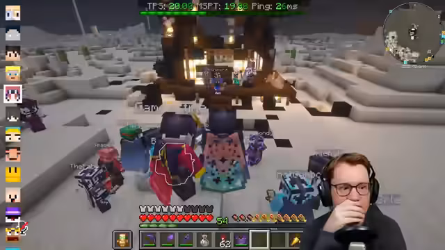 01:34:44Die Vorbereitungen für ein bevorstehendes Event, die 'Säulen-Eröffnung', laufen auf Hochtouren. Es wird über den Einlass und die Organisation der Besucher diskutiert, da eine große Anzahl von Spielern erwartet wird. Es wird vorgeschlagen, Dreier- oder Vierergruppen zu bilden, um einen reibungslosen Ablauf zu gewährleisten und Überfüllung zu vermeiden. Währenddessen werden letzte Bauarbeiten abgeschlossen, wie die Fertigstellung einer mittleren Plattform und das Hinzufügen fehlender Holzblöcke und Froglights. Die anhaltenden Server-Lags stellen jedoch eine große Herausforderung dar, da sie das Fliegen und die allgemeine Interaktion erschweren. Es wird versucht, die Musikblöcke für das Event zu muten, um die Geräusche zu reduzieren und die Lags nicht weiter zu verschlimmern. Trotz der technischen Schwierigkeiten und der Tatsache, dass einige Teilnehmer, wie Willi, aufgrund der Lags nicht auf den Server kommen können, wird beschlossen, das Event pünktlich um 18:30 Uhr zu starten. Die Organisatoren bitten um Geduld und entschuldigen sich für die Unannehmlichkeiten.