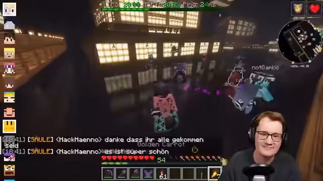 02:05:50Das Event beginnt mit einer herzlichen Begrüßung der anwesenden Gäste, trotz der anhaltenden Lags und der Abwesenheit einiger Teilnehmer. Es wird verkündet, dass das Infinity Castle aus Demon Slayer in den letzten drei Wochen mit viel Mühe und Organisation gebaut wurde. Das Team, bestehend aus den 'Säulen' des Projekts, hat eng zusammengearbeitet und verschiedene Farmen wie Holz- und Eisenfarmen errichtet. Besondere Danksagungen gehen an G-Time für seine Unterstützung bei der Planung und Materialbeschaffung, an Joe für seine Hilfe bei der Technik und an Fuxy für ihre Beiträge zu den Farmen. Es wird erwähnt, dass insgesamt 700.000 Items und über eine Million Blöcke verbaut wurden, was die enorme Leistung des Teams unterstreicht. Die Mathematiker im Team haben diese Zahlen präzise berechnet. Die 'Säulen' werden für ihre Zusammenarbeit und ihren Elan gelobt, da viele sich vorher nicht kannten, aber sofort ein starkes Team bildeten. Anschließend beginnt der Einlass in das Infinity Castle in Dreiergruppen. Die Besucher werden gebeten, einen 'Trank des leichten Fallens' zu trinken und eine Elytra anzulegen, um die Attraktion zu erleben.