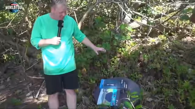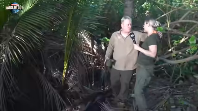 01:49:18Nach mühsamen Anstieg zum Lagerplatz beginnt der Streamer, seine ehemaligen Überreste zu identifizieren. Er zeigt die berühmte Feuerpalme, an der er damals Feuer gemacht hat, und die Stelle, an der seine Hängematte hing. Besonders bewegt ist er von der Entdeckung der Kühlschranktür, die nach vier Jahren immer noch vorhanden ist und ihm damals als gerade Fläche diente, was für ihn eine unglaubliche persönliche Relikt ist.