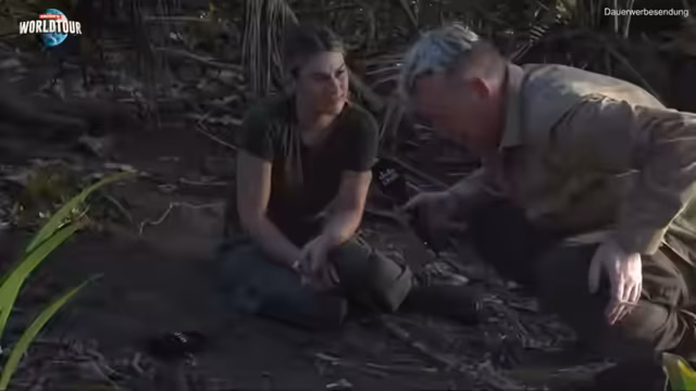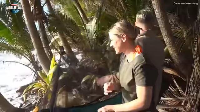 03:07:35Da die Ebbe einsetzt und der Wasserstand steigt, ist eine Entscheidung über die Nachtunterkunft notwendig. Der Streamer, der sein Survival-Outfit anzieht, bietet seiner Partnerin die Wahl: Entweder sie bleibt in einer Hängematte mit Moskitonetz, was den puren Dschungel-Charakter bedeutet, oder sie wählt ein Zelt mit Luftmatratze, was aber als "verloren" gilt. Die Partnerin entscheidet sich für die Hängematte.