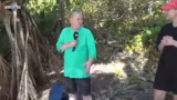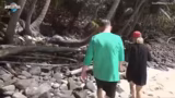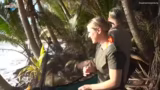 01:43:43Die Rückkehr an den alten, von vier Jahren bekannten Ort im Dschungel löst beim Streamer eine Welle von Emotionen aus. Er erinnert sich an die Nöte, vor allem an die Gefahr, barfuß über die scharfen und rutschigen Felsen zu gehen, und überschätzt seine eigene Fitness sofort wieder. Das zwingt ihn, auf der Suche nach Kokosnüssen äußerst vorsichtig zu sein und um Hilfe zu rufen, als er im Wasser zu schwimmen droht.