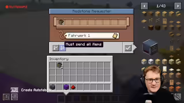 00:13:46Ein entscheidendes System wird eingeführt: Just-in-Time-Belieferung der einzelnen Fabrikstationen. Das bedeutet, dass die benötigten Teile exakt dann an der richtigen Station eintreffen müssen, wenn sie benötigt werden. Dafür wird ein neues Netzwerk für die Fabrik erstellt. Mit dem Redstone Requester wird eine Bestellung an das Zentrallager gesendet, die die vier Radial Chassis für das erste Auto liefert. Die Teile werden über ein Chain-Conveyor-System direkt zur ersten Station geliefert und dort mit einem Mechanical Arm in die Konstruktion eingesetzt.