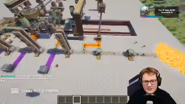 00:03:03Der Stream beginnt mit einem herzlichen Willkommen und einem Überblick über den aktuellen Projektstand. Der Fokus liegt auf dem Bau einer komplexen Autofabrik in Minecraft mit dem Ziel, diese einer echten Autofabrik nachzuempfinden. Nach dem Begrüßungsphase wird das Prinzip der automatischen Auftragsgenerierung erklärt. Ein Takt-System wird genutzt, um Bestellungen zu erstellen und die ersten Konstruktionen zu aktivieren. Es werden die Herausforderungen der Materialversorgung und der Steuerung der einzelnen Fabrikstationen erörtert. Zudem wird ein Just-in-Time-Lieferprinzip als Kernkonzept für die Fabrik etabliert.