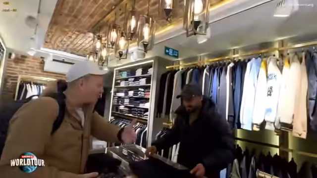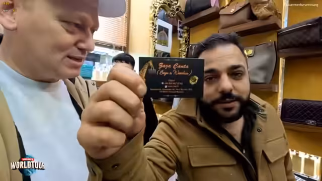 03:50:31Nach der Lösung der technischen Probleme durch Yusuf, der die Kamera-Einstellungen in einer App ändert, setzt der Streamer seine Einkaufstour fort. Er erkundet verschiedene Läden und zeigt neben Fußballtrikots von Galatasaray und Fenerbahçe auch traditionelle Hüte und Schals. Ein Höhepunkt ist der Kauf eines original aussehenden Richard-Mill-Uhren-Designs. Der Streamer kündigt an, die gekauften Artikel an den Chat zu verlosen, um die Interaktion mit den Zuschauern zu fördern und ihnen eine kleine Erinnerung an Istanbul mitzugeben.