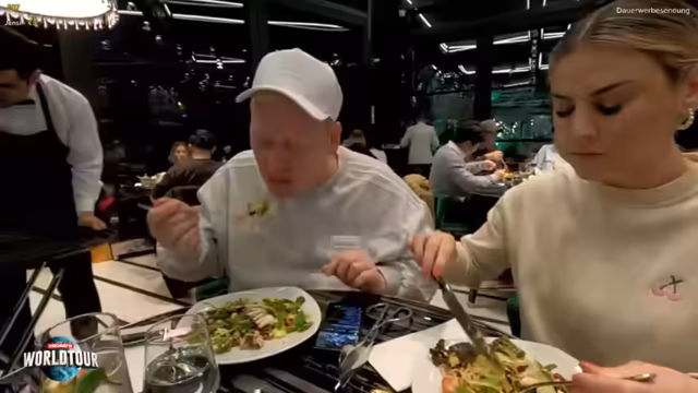 06:51:49Der Streamer stellt fest, dass das Leitungswasser mit Früchten dekoriert und zu 'Luxus-Wasser' aufgewertet wird, was bei den hohen Preisen im Restaurant üblich scheint. Der Kellner gibt die Hauptspeise frei, während der Streamer die Live-Zuschauer auffordert, ihre Schätzungen für die Gesamtrechnung in den Chat zu schreiben. Ahmed, der Mitarbeiter, stellt sicher, dass das Essen schnell und mit einer speziellen Betreuung für die Streamer-Kamera serviert wird.