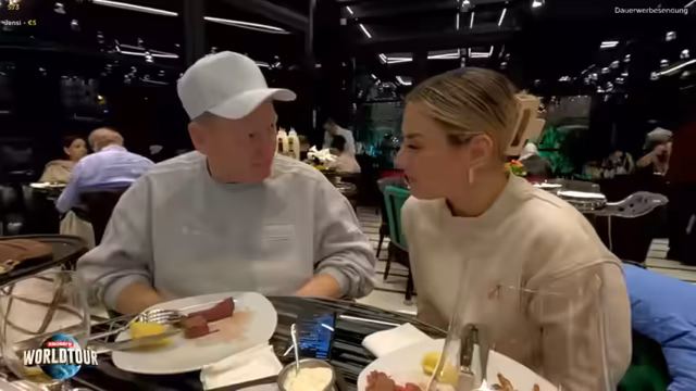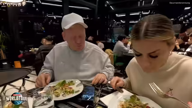 07:06:42Im weiteren Verlauf des Streams wird ein Besuch im Steakhaus Nusr-Et in Istanbul gezeigt. Der Streamer und seine Begleitung bestellen und probieren verschiedene Fleischgerichte wie Tomahawk und Filet Mignon. Dabei werden die Größe und der hohe Preis der Speisen diskutiert, wobei von Kosten zwischen 6400 und 6900 Euro die Rede ist. Während des Essens wird die ungewöhnliche Servicepraxis des Restaurants bemängelt, bei der Teller während des Essens weggenommen werden. Eine Kellnerin wird dabei speziell erwähnt.