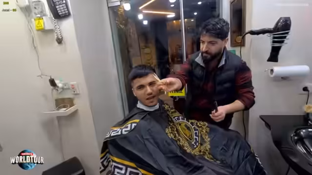 02:16:22Der Streamer befindet sich in einem extrem kleinen türkischen Friseurladen in Istanbul. Die Atmosphäre ist surreal und chaotisch, zunächst wird der Streamer verdächtigt, Drogen gekauft zu haben, als ein Mann mit einem Rucksack Geld übergibt. Dann beginnt eine ungewöhnliche Haarschnitt-Behandlung, bei der der Friseur eine aggressive und unkonventionelle Technik anwendet, was bei dem Streamer zu erheblichen Irritationen und auch Schmerzen führt. Der Prozess wird als sehr befremdlich und urkomisch beschrieben.