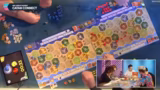 01:07:07Der Streamer analysiert die Züge der Spieler und erklärt die Konsequenzen ihrer Entscheidungen. Er zeigt auf, wie passive Fähigkeiten von Gebäuden den Spielverlauf beeinflussen und wie man Ressourcenmanagement optimieren kann. Spieler haben nun mehrere Optionen, von der reinen Münzgenerierung über den Bau von ressourcenerzeugenden Gebäuden bis hin zum direkten Angriff auf Mitspieler. Die Kamerafahrt durch die Spielpläne gibt einen guten Überblick über die Fortschritte am Tisch.