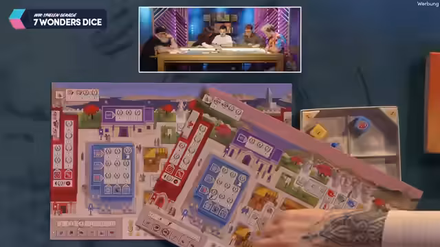 00:46:46Nach den Vorstellungen beginnt das erste Hauptspiel, 'Seven Wonders Dice'. Es ist ein Würfelspiel im Universum des Klassikers 'Seven Wonders'. Jeder Spieler hat eine eigene Stadt mit einem einzigartigen Wunderbonus. Das Ziel ist es, durch das strategische Platzieren von Würfeln, Ressourcen zu generieren und Gebäude zu bauen, um Siegpunkte zu sammeln. Das Spiel endet, wenn drei Spieler je ein Gebäude vollständig ausgebaut haben. Die Regeln werden detailliert erklärt, inklusive des Militärkonflikts mit benachbarten Spielern.