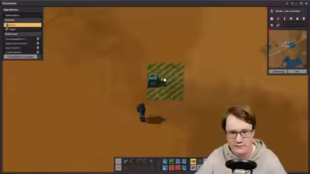 00:06:46Es wird überlegt, ob Items wie Schwefelsäure für eine Uranquelle mit Raketen ins Weltall geschossen und über eine Raumstation verteilt werden sollen, um den Transport zu beschleunigen. Theoretisch könnten überall auf dem Planeten Empfangsstationen gebaut werden, die Items aus dem Weltall anfordern. Das Ziel des Spiels ist die Flucht aus der Galaxie. Es gibt zwei Planeten, wobei der zweite Planet noch nicht bebaut wurde, da mehr Ressourcen benötigt werden. Der aktuelle Planet ist von Atomexplosionen gezeichnet, die zur 'Aufräumung' eingesetzt wurden. Kleine Scan-Stationen betreiben Aufklärung, jedoch wird relativ viel Emission erzeugt. Ziel ist es, an einer zentralen Stelle alle fünf Ressourcen (Eisen, Kupfer, Kohle, Stein und Uran) verfügbar zu haben, wobei Uran zunächst weniger wichtig ist.