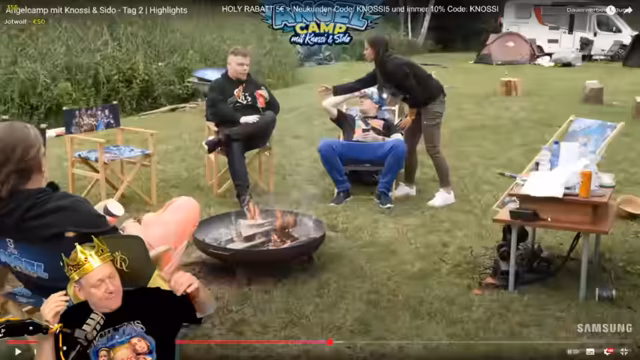 03:16:07Ein zentrales Ereignis ist der Streit über die Schlafplätze. Nach einem Angeltrip entscheidet die Gruppe durch Würfeln, wer im Wohnwagen und wer im Zelt schlafen muss. Sascha, der den Schlafplatz verliert, zeigt starke emotionale Reaktionen und ist sichtlich aufgewühlt. Der Streamer tritt als Vermittler auf und bietet an, mit ihm im Wohnwagen zu schlafen, um die Situation zu entschärfen. Dieser Konflikt offenbart den starken Zusammenhalt der Gruppe und die komplexe Dynamik der Freundschaft, besonders unter dem Stress der Camp-Bedingungen.