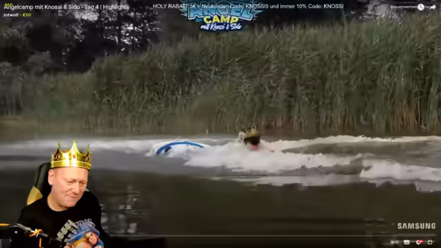 04:32:26Ein bemerkenswertes Highlight ist der Sprung der Zuschauerzahl auf über 310.000, was für einen Twitch-Stream außergewöhnlich hoch ist. Der Streamer würdigt diese Zahl, die für das Angelcamp 2020 erreicht wurde, und bedankt sich ausdrücklich bei den Zuschauern aus aller Welt, insbesondere aus Vietnam. Er erinnert sich, dass man ursprünglich mit 200 Zuschauern pro Abend zufrieden gewesen wäre. Die Atmosphäre ist geprägt von Nostalgie und einem Gefühl der Gemeinschaft. Als Sensation wird der Durchschwimmer eines 'Aquaman' durch den See beschrieben, der sich durch eine Wasser-Barriere kämpfen musste und von sechs Sicherheitskräften empfangen wurde. Dieser Moment unterstreicht die inszenierte Action und den Spektakelfaktor des gesamten Angelcamps.