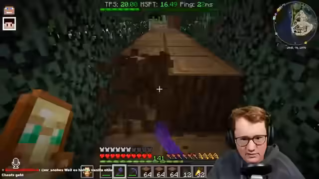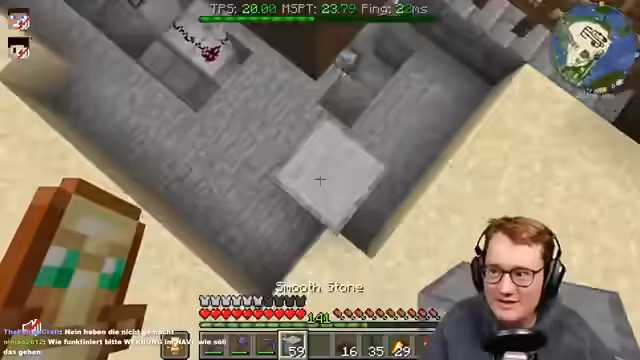 01:17:52Der Streamer arbeitet am Abschussraum der Achterbahn und testet den Einsatz von Windcharges, die durch Slabs hindurch funktionieren. Er experimentiert mit der Platzierung von Redstone-Komponenten, um den Effekt zu optimieren. Zusätzlich plant er, ein Detonationsgeräusch von Creepers mit Verzögerung einzubauen, um den Effekt realistischer zu gestalten. Dabei nutzt er Note-Blöcke für die Soundsteuerung und probiert verschiedene Timing-Einstellungen aus, um den perfekten Moment für die Geräuschabspielung zu treffen.