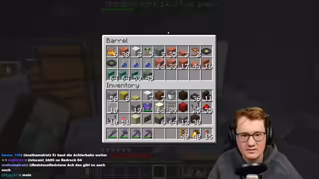00:03:07Der Bau der Wildachterbahn im Minecraft-Freizeitpark steht im Fokus. Es werden Designs für eine Holzachterbahn mit Abenteuerelementen diskutiert, darunter Looping, Dropdown-Schächte und animierte Show-Effekte. Ein funktionierendes Förderband aus Matt und Tuff wird implementiert, um Gold-Items automatisch aus einer Mine zu transportieren und in einem 'Crusher' zu verarbeiten. Die Technik umfasst Nachlaufsteuerungen, um Items vollständig zu verarbeiten, bevor das System stoppt.