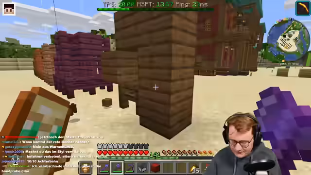 02:25:02Nach dem erfolgreichen Test des Creeper-Effekts und der Boost-Mechanik konzentriert sich der Streamer auf den Bau des Startbereichs und des Liftturms. Er diskutiert mit dem Chat, ob Technik-Komponenten sichtbar bleiben sollen oder nicht, und entscheidet sich für eine teilweise Sichtbarkeit zur Steigerung der Immersion. Trotz gelegentlicher Lags ist er mit dem Ergebnis hochzufrieden und plant, die Achterbahn nach Fertigstellung der letzten Elemente der Community zu präsentieren.