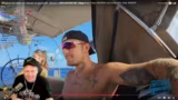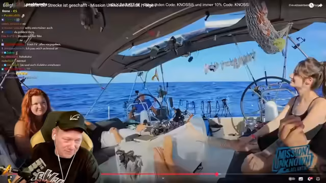 03:50:00Nachdem der Streamer die sportlichen Aktivitäten der Teilnehmer auf dem Boot anspricht, kommt es zu einer Diskussion über den Fußball-Begriff 'Teufelsdreier'. Als er an den Kuchen erinnert, den ein Teilnehmer in Rekordzeit gegessen hat, entspinnt sich ein Gespräch über die Kochkünste der Crew. Es wird auch erwähnt, dass die Teilnehmer zu lange auf dem Boot seien und daher müde seien.