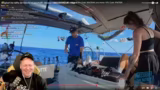 01:14:19Nachdem der Streamer den ganzen Tag in der prallen Mittagssonne verbracht hat, stellt er bei sich einen extremen Sonnenstich fest, der mit starkem Zittern und Unwohlsein einhergeht. Parallel dazu wird ein Problem mit einem Segel des Bootes bekannt, das repariert werden muss. Gemeinsam mit Christian und Peter wird das Segel erfolgreich geklebt und gesichert, wobei eine Leine reißt. Der Streamer blickt auf das gelungene Teamwork zurück, gibt aber auch seinen eigenen Fehler für die gesundheitliche Beeinträchtigung zu.