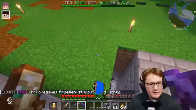 02:53:10Es wird eine Essenspause eingelegt, da der Streamer in der Nacht nicht effektiv arbeiten kann, weil überall Mobs herumlaufen, obwohl der Bereich größtenteils ausgeleuchtet ist. Die Schwierigkeit, in einer solchen Umgebung zu planen und zu bauen, wird betont. Die Diskussion über moralische Käuflichkeit wird fortgesetzt, wobei der Streamer klarstellt, dass er bestimmte Dinge, die er moralisch nicht vertreten kann, auch für eine Milliarde nicht tun würde. Es wird festgestellt, dass nicht alles käuflich ist und manche Menschen dies nicht verstehen. Die Notwendigkeit, sich hinzulegen, wird erneut erwähnt, da die Leute nicht schlafen wollen und der Streamer keine Lust hat, die ganze Nacht im Bett zu liegen. Es wird über das Ziel gesprochen, 6 von 8 Aufgaben zu schaffen und die Notwendigkeit, über das eigene Verhalten nachzudenken, um die Situation zu verbessern.