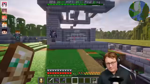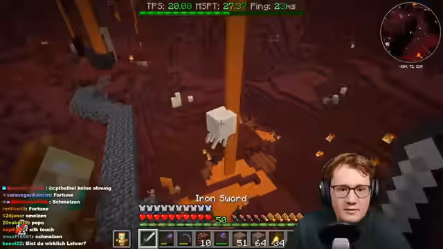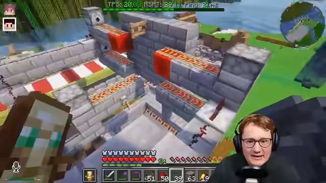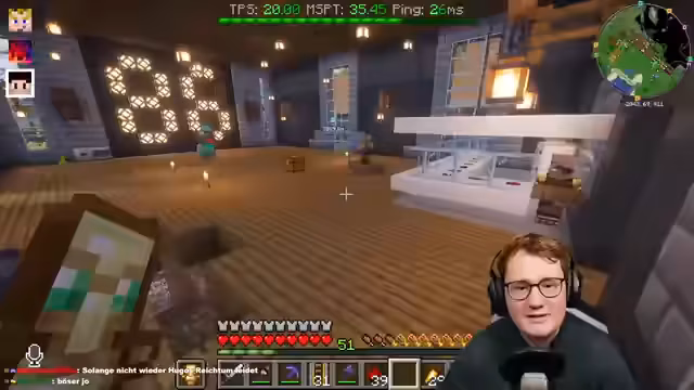 05:36:38Es wird überlegt, Sonnenblumen als einzigartige Tickets für den Freizeitpark zu verwenden und diese mit Sonderzeichen umzubenennen, um Fälschungen zu erschweren. Die Möglichkeit, im Craft-Attack-Safe-Space Regeln gegen das Klonen von Tickets zu verankern, wird diskutiert, da befürchtet wird, dass Spieler wie 'Logo' versuchen könnten, diese zu exploiten. Ein Gast, Norman, wird eingeladen, am Stadionbau mitzuwirken und erhält einen 7x7x7 Raum zur freien Gestaltung, mit der Vorgabe, an bestehende Dirt-Blöcke und Holzfenster anzuschließen. Der Streamer erklärt zudem die Bedeutung der Servereinstellungen TPS (Ticks per Second), MSPT (Milliseconds per Tick) und Ping. Er erläutert, dass TPS die Häufigkeit der Spielberechnungen pro Sekunde angeben und MSPT die Zeit, die der Server für einen Tick benötigt. Ein Wert über 50 Millisekunden für MSPT führt zu sinkenden TPS und damit zu Spielverzögerungen, was die Wichtigkeit einer effizienten Serverleistung unterstreicht.