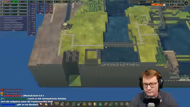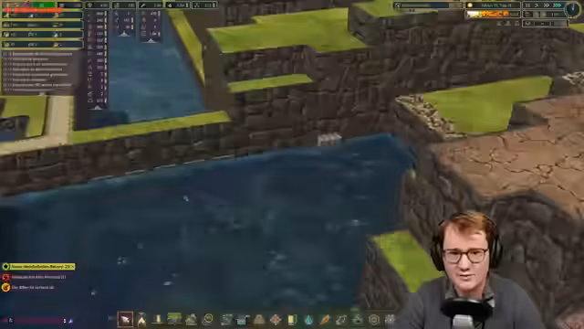 04:24:01Das Gameplay im Timberborn-Spiel setzt fort. Das Pumpwerk-Projekt ist zu einem Viertel fertig, die Stauanlage muss jedoch erst komplettiert und mit einer großen Energieversorgung ausgestattet werden. Die Biber werden aktiv beim Bau unterstützt, indem Erdbagger und Roboter mit TNT eingreifen. Wichtige Bauwerke wie Schützschleusen und U-Bahn-Systeme werden geplant und schrittweise umgesetzt. Ein technisches Problem, das eine Ebene zu hoch gebaut wurde, erfordert eine Korrektur mit Sprengstoff.