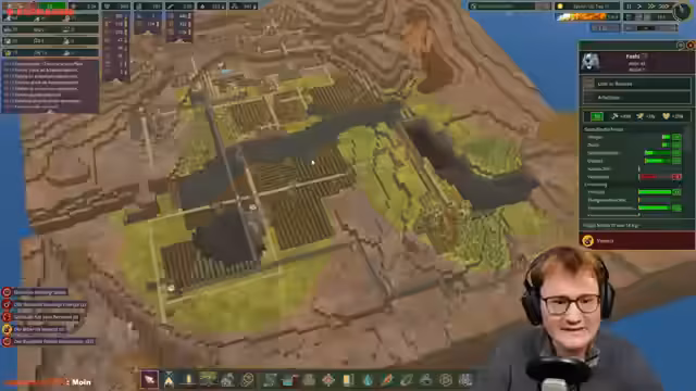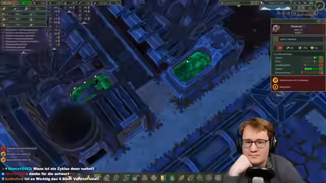 00:06:17Der Stream beginnt mit einer herzlichen Begrüßung des Publikums. Es wird das Spiel Timberborn vorgestellt, in dem es um Biber geht, nachdem die Menschheit ausgestorben ist. Die Kolonie besteht aus normalen und Roboter-Bibern und hat das Ziel, die Welt umzupumpen und eine stabile Infrastruktur aufzubauen, einschließlich einer Wasserversorgung und eines Rechenzentrums zur Erzeugung von Wissenschaftspunkten.