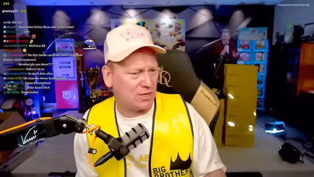 00:12:10Nach einem kurzen, unangekündigten Unterbrechungsabschnitt, der auf ein technisches Problem hindeutet, kehrt der Streamer zurück. Er wendet sich direkt an den Chat und bittet um Ruhe, während er plant, in Einzelchat-Unterhaltungen einzusteigen. In diesem Abschnitt wird auch eine spielerische Konfrontation mit einem Familienmitglied, Bubi, inszeniert, was eine humorvolle und zugleich chaotische Familieninteraktion zeigt.