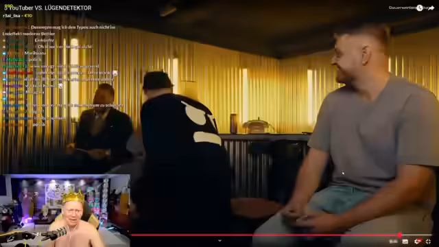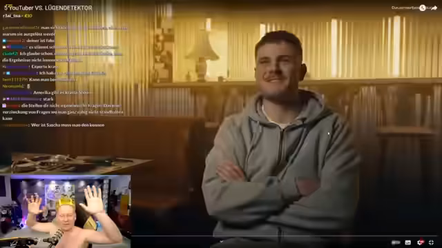 02:55:08Der Streamer beginnt, seinem Freund Sascha einen Lügendetektor-Test zu unterziehen. Sascha sitzt auf einem Stuhl und wird mit verschiedenen Sensoren ausgestattet, die seine physiologischen Reaktionen messen sollen. Der Streamer liest Sascha Fragen vor, die vom Chat stammen, und Sascha muss nur mit „Ja“ oder „Nein“ antworten. Die Fragen sind vielfältig und reichen von persönlichen über finanzielle bis hin zu humorvollen Themen. Der Streamer kommentiert die Reaktionen live und versucht, die Ergebnisse zu interpretieren, während die Zuschauer die Glaubwürdigkeit von Saschas Antworten bewerten.