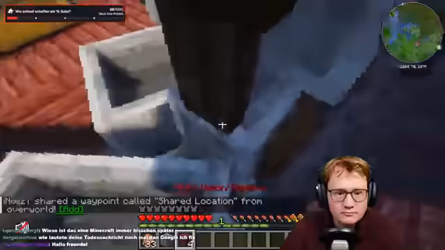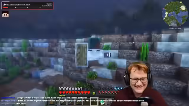 05:42:54Um das Problem der Silberfische zu lösen, wird das Material der Wände von Bruchstein zu Netherziegel ausgetauscht, in die die Mobs nicht eindringen können. Die Farm wird verschlossen und der erste Testlauf beginnt. Die extreme Erschöpfung des Streamers führt jedoch dazu, dass die Aufnahme für den Tag beendet wird. Der Stream endet abrupt mit dem Hinweis, dass der Bau der Farm am nächsten Tag fortgesetzt wird.