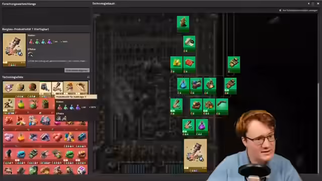 00:42:55Eine zweite, separate Fabrik ist für die Produktion von Wissenschaftspaketen zuständig, die für die Forschung im Spiel unerlässlich sind. Der Streamer demonstriert, wie diese Pakete aus verschiedenen Materialien zusammengesetzt werden. Er stößt dabei auf ein Problem in der chemischen Verarbeitungsanlage, bei dem ein Überangebot an Leichtöl die Produktion anderer Schlüsselkomponenten blockiert.