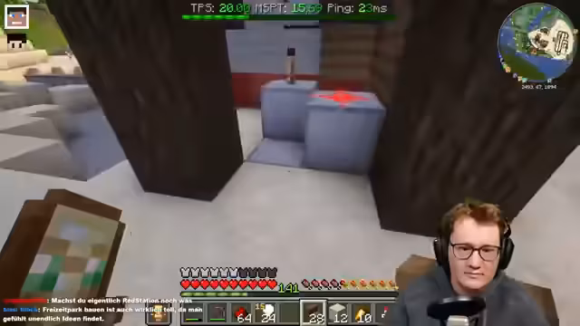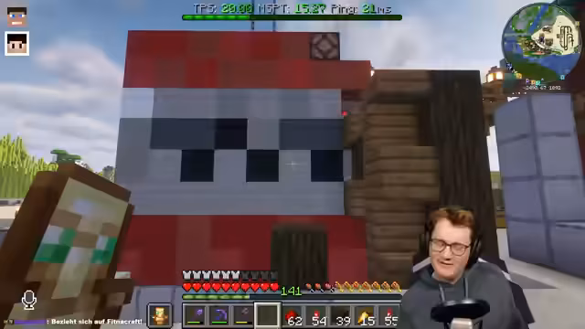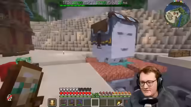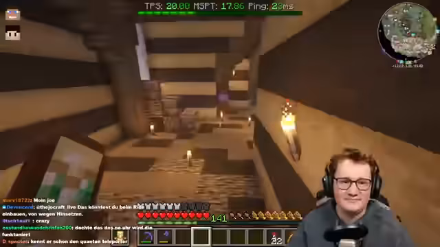 00:20:07Während des Streams besuchte CastCrafter den Server und testete die fertiggestellte Achterbahn. Gemeinsam wurden neue Spielkonzepte entwickelt, darunter ein Tower-Defense-Spiel im Haunted Forest-Bereich, bei dem Spieler Hexen mit Windcharges abwehren müssen. Weitere Ideen umfassten einen Coin-Pusher-Automaten mit Booten für den geplanten Japan-Bereich und ein TNT-Spiel, bei dem Spieler durch Windcharges Explosionen an einer Cobblestone-Wand auslösen. CastCrafter brachte auch Vorschläge für Kupfergolem-basierte Spiele ein, deren Umsetzung jedoch auf das Update warten muss.