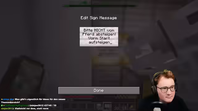 00:12:00Der Streamer äußert den Wunsch, Zuschauer bei Bauprojekten einbeziehen zu dürfen, was jedoch den Regeln von Craft Attack widerspricht und daher nicht möglich ist. Nach einer persönlichen Abschweifung über Bewältigungsstrategien bei mentalen Problemen durch Ablenkung, wird der Redstone-Fabrik wieder Priorität eingeräumt. Es gibt keine konkreten Termine, da es sich um spontane Aktionen handelt, jedoch wird erwähnt, dass bald Kanalpunkte verfügbar sein werden, für die ein spezielles Konzept erarbeitet wird.