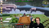 00:52:43Nachdem der Streamer kurzzeitig Pause gemacht hat, kehrt ein Kooperationspartner namens Logo zurück. Gemeinsam arbeiten sie an der Betonierung des Parkplatzes. Um die Rückkehr zu beschleunigen, wird Logo auf eine zuvor von Gwini gebaute, hochinnovative Maschine aufmerksam gemacht. Es handelt sich um eine Stasis-Chamber, die Spieler mithilfe von hund gestapelten 'Windcharges' explosionsartig in extreme Höhen katapultiert. Die Demonstration verläuft erfolgreich und wird als 'insane' und 'geil' bezeichnet.