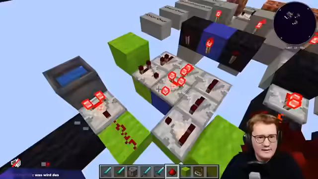 03:00:22Der Streamer plant ein Redstone-System für ein neues Spiel im Freizeitpark, bei dem 15 verschiedene Ziele abgeschossen werden müssen. Das Ziel ist es, eine Technik zu bauen, die statistisch auswertet, welche Ziele getroffen wurden. Die Herausforderung ist der Bau eines binären Codierers/Decoders, der mit 15 Zuständen (0-15) umgehen kann. Er stößt auf ein inspirierendes Design, das auf der Summierung von Stromstärken (1, 2, 4, 8) basiert und somit jede Zahl darstellen kann. Dieses Konzept wird als revolutionär für Minecraft-Redstone beschrieben.