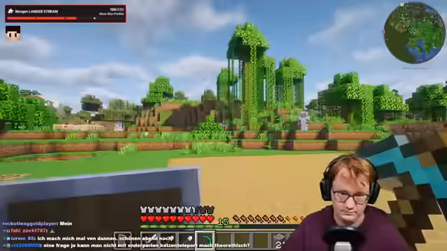 05:59:05Es findet eine Diskussion über den anstehenden Nerf von Elytra in Minecraft statt, bei dem das Zünden von Raketen entfernt werden soll, während das Gleiten erhalten bleibt. Die Meinung des Streamers ist gemischt; er findet den Nerf bedauerlich, da der Trident dadurch an Wert verlieren könnte, erkennt aber auch, dass Elytra ohne Raketen noch immer sehr nützlich sind. Der Chat bringt die Idee eines Elytra-Flugs ohne Raketen-Zünden ins Spiel.