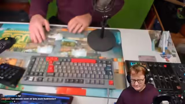05:45:18Neben dem Adventskalender wird eine große Schreibtischunterlage als weiteres Merchandise-Produkt vorgestellt. Das Design wird als sehr farbenfroh und von hoher Druckqualität beschrieben. Der Streamer kritisiert, dass in diesem Jahr auf Poster verzichtet wurde, da sie oft beschädigt ankommen. Ein möglicher Verkauf wird angekündigt, falls sich Nachfrage zeigt. Zusätzlich werden verschiedene Skins und der Kauf von Supporternamen erwähnt.