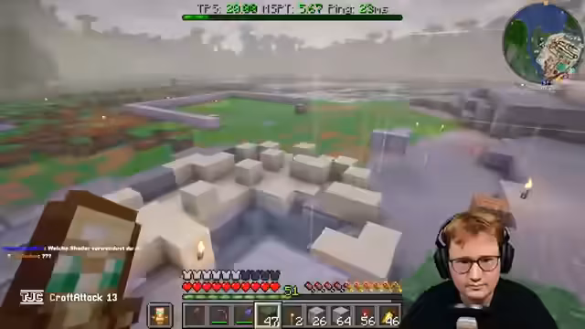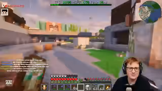 01:20:25Während des Bauprozesses treten mehrere technische Hürden auf. So wird festgestellt, dass sich Allays aus ihrem Chunk entfernen und somit das Spielprinzip zunichtemachen könnten. Als Lösung wird der Bau eines umschließenden Raumes oder Käfigs vorgeschlagen. Zusätzlich werden Materialien wie Spinnweben benötigt, die zunächst nicht gefunden werden. Auch die Frage nach der Anzeige von Followern in der Stream-Mask wird an die Community weitergegeben, um kreative Vorschläge zu sammeln und eine zu spammy Darstellung zu vermeiden.