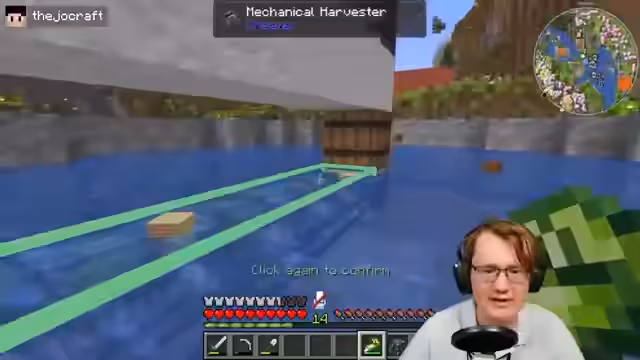 03:01:38Nachdem die Pulp- und Zuckerproduktion läuft, wird mit der Planung einer neuen, kombinierten Baum- und Kelbfarm begonnen. Die Farm soll so gestaltet werden, dass sie Holz und Kelp automatisch erntet und verarbeitet. Das Design sieht vor, dass die Bäume auf einer oberen Ebene wachsen, während in darunterliegenden Wasserbecken Kelp gezüchtet wird. Der Erntevorgang soll durch spezielle Harvesters und Windmill Bearings automatisiert werden. Als besonderes Gestaltungsmerkmal wird der Boden des Kelp-Beckens aus Glas gefertigt, um den Produktionsprozess für die Zuschauer sichtbar zu machen.